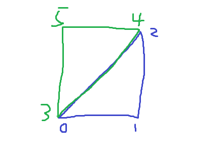 그런데 두 삼각형이 두 개의 버텍스를 공유하므로, 여섯 개의 버텍스를 전달하는건 버텍스를 두 개만큼 손해보는 것과 같다.
